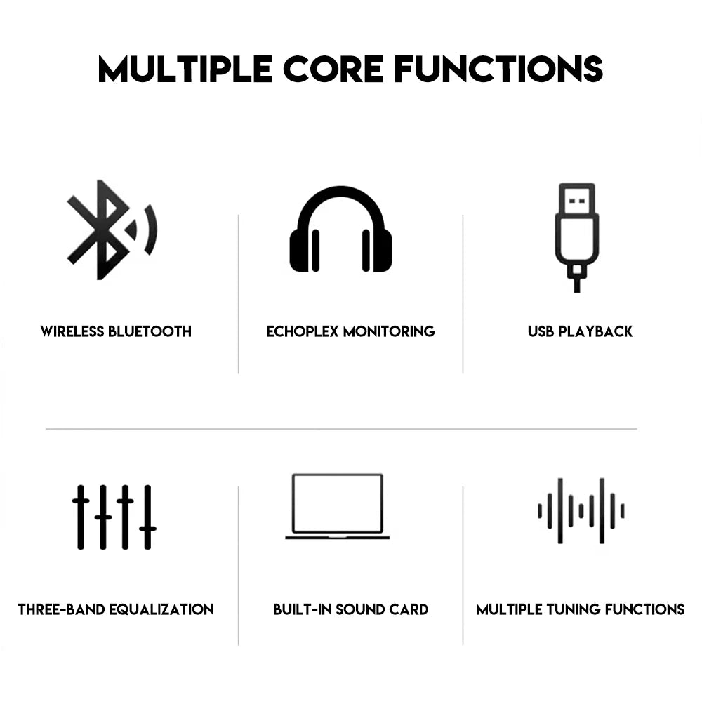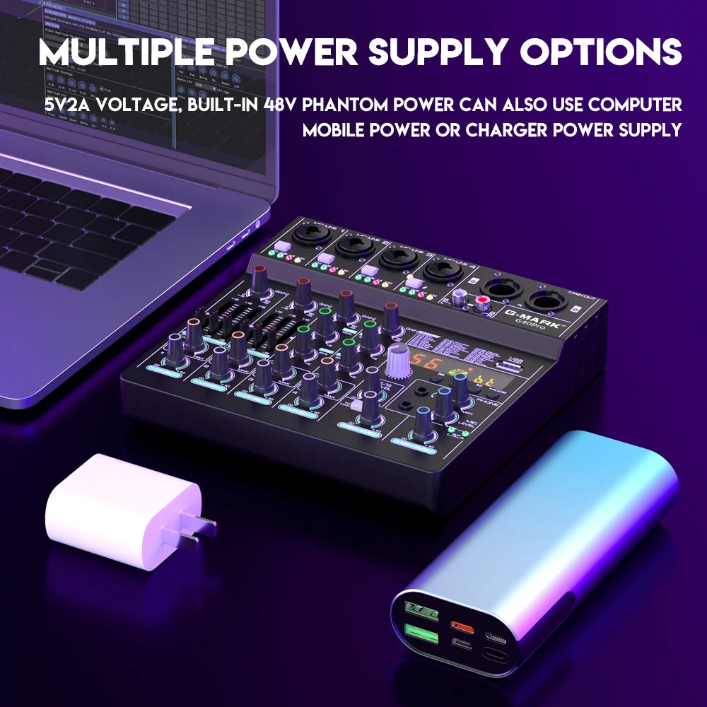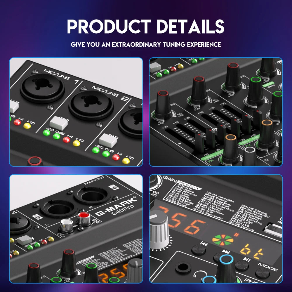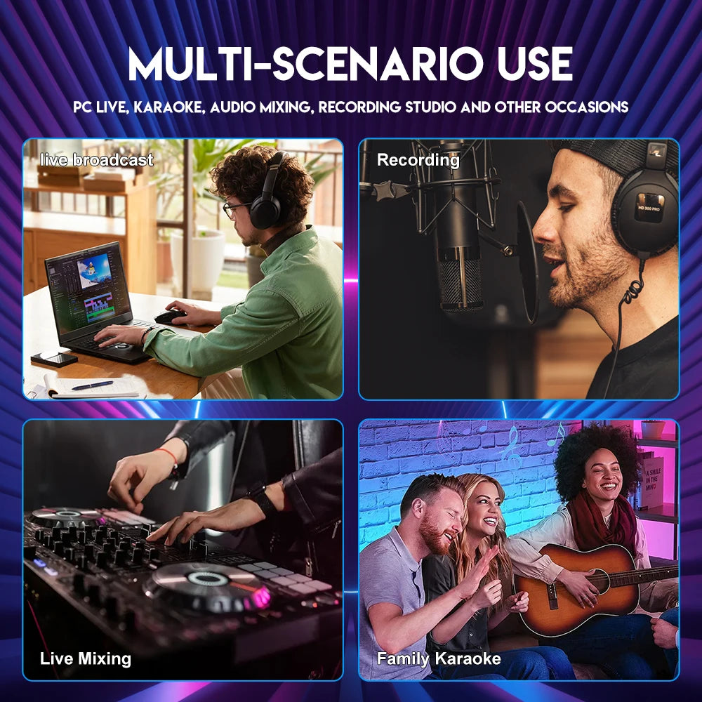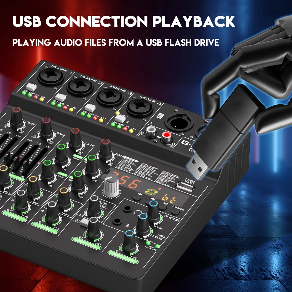 How many microphones can it support? Up to four microphone inputs with phantom power for professional recording and live mixing.