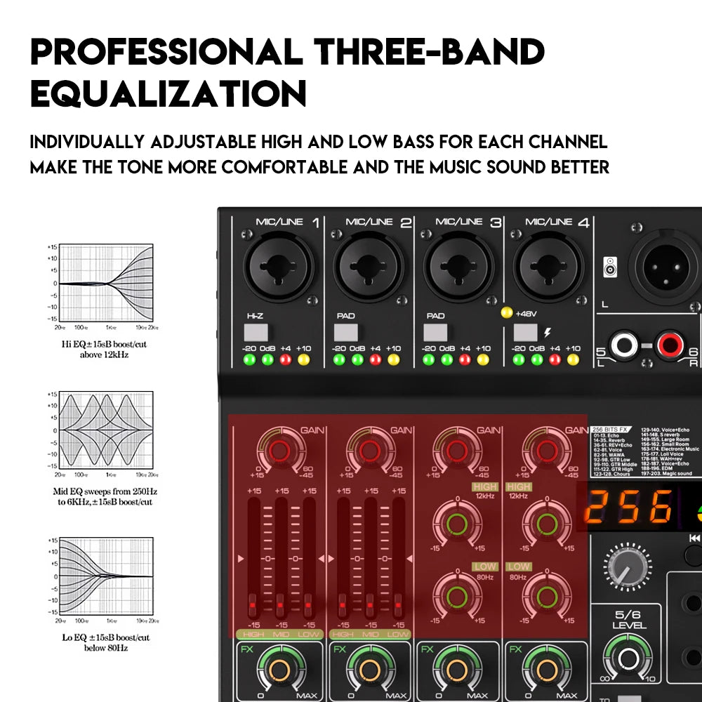Behind its clean lines lies professional-grade circuitry: pristine 24-bit conversion, 4 phantom-powered microphone inputs, and 256 onboard DSP effects. Whether tracking vocals, shaping live performances, or streaming, this engine gives you the tactile authority and sonic depth usually reserved for large-format boards.