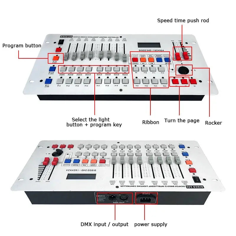 - DMX Channels: 192 total (24 dimming channels)