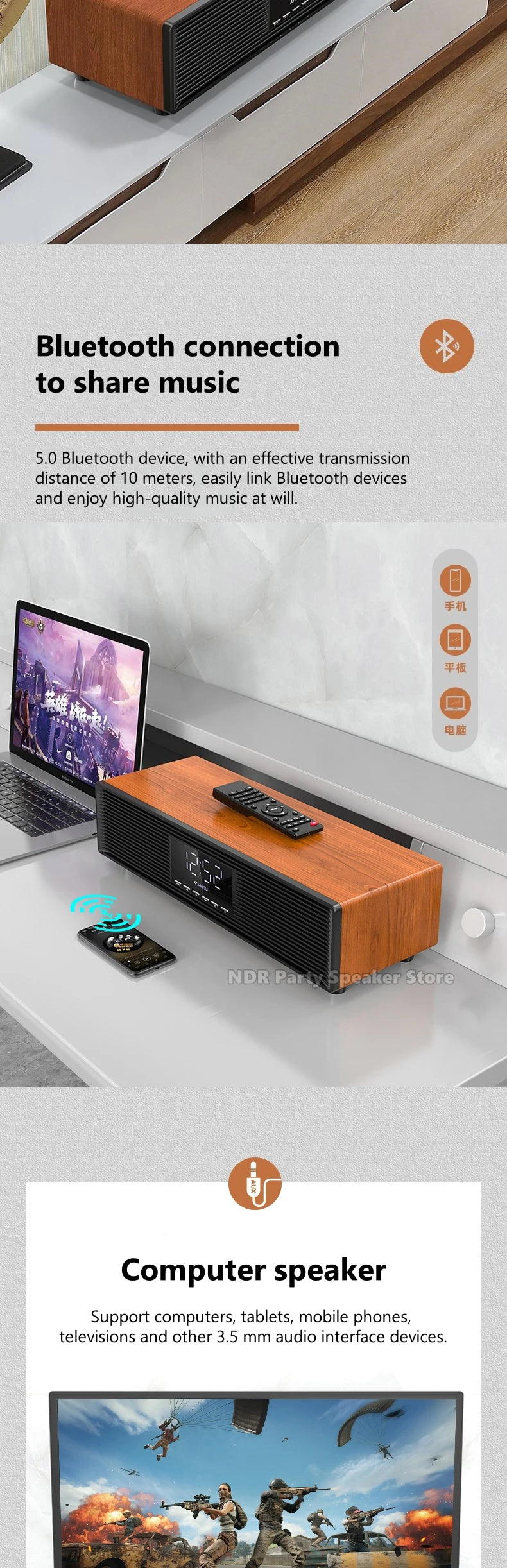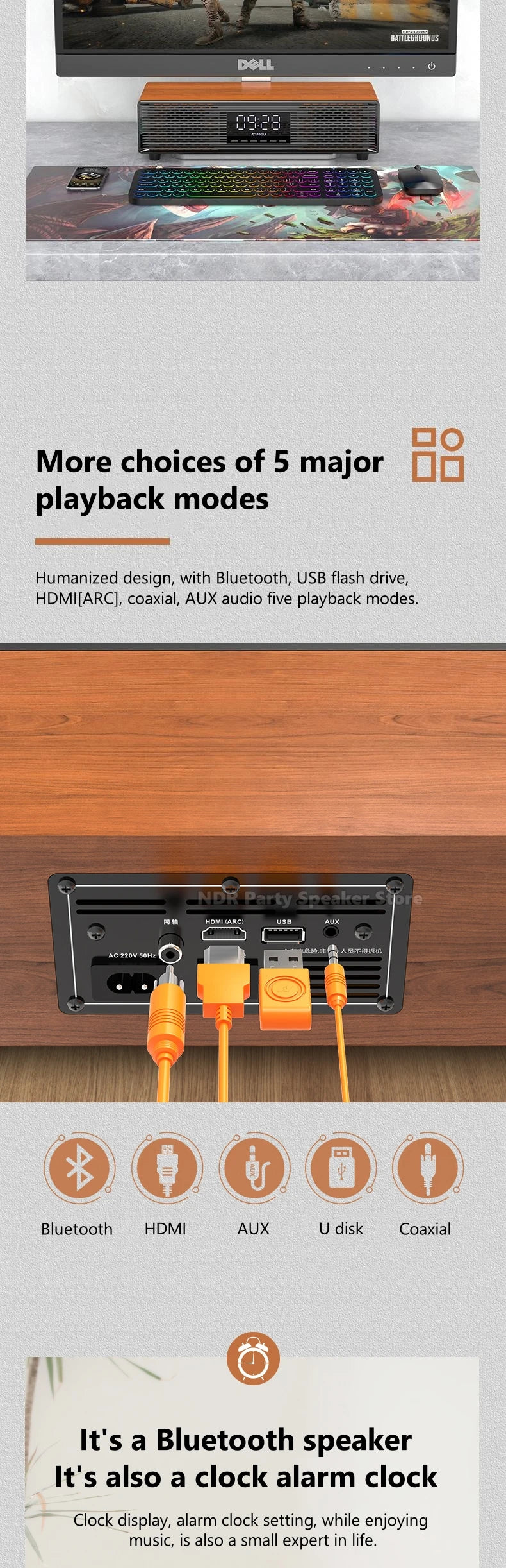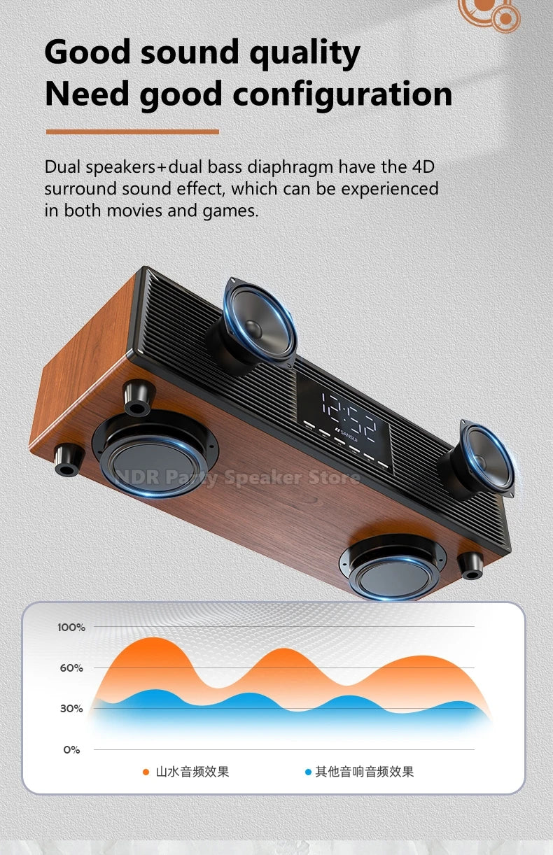 ChronoWave 400 transforms any room into a personal cinema with 400W of immersive audio power. Its elegant wood housing, LED clock display, and precise dual-driver setup combine clarity, warmth, and function in one modern unit. Designed for home theaters, desktops, and entertainment spaces that demand both performance and style.