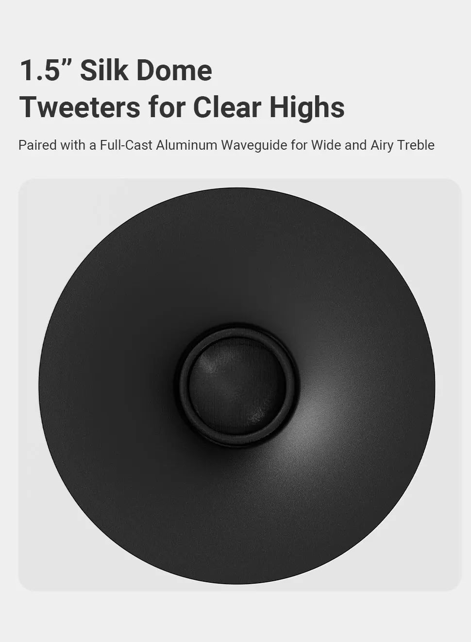 Tweeter: 1.5" Silk Dome with aluminum waveguide