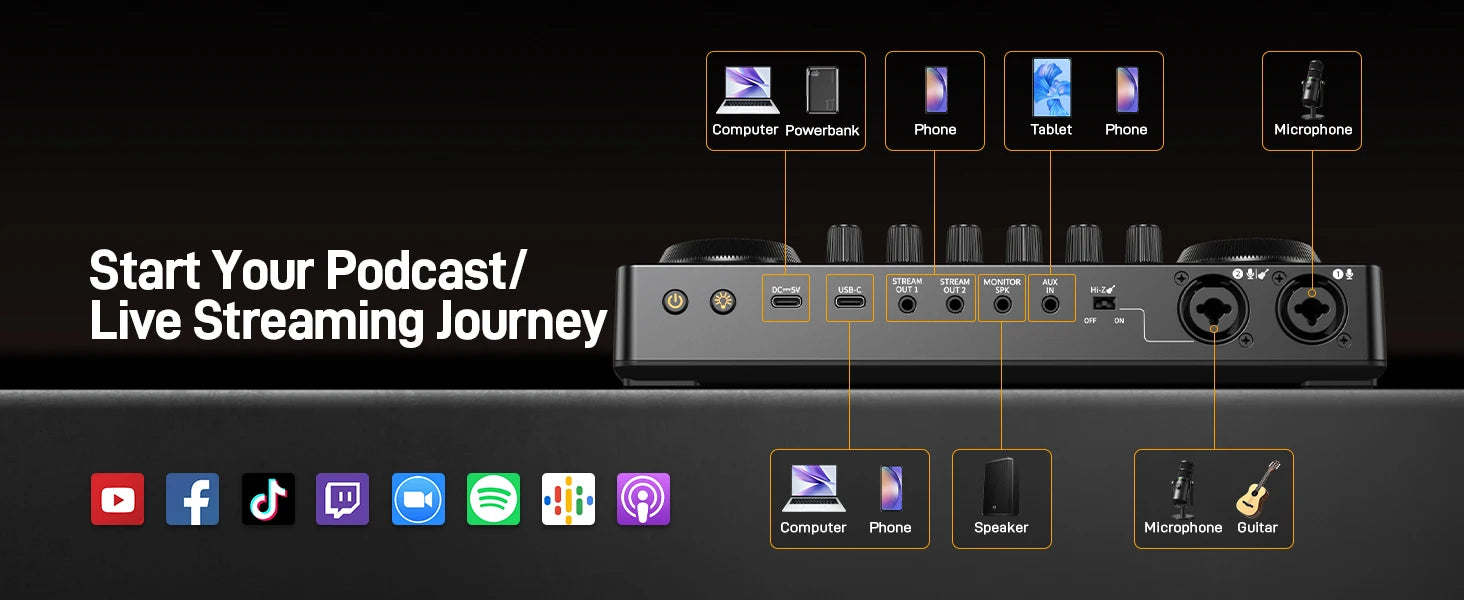 Its built-in battery delivers up to eight hours of off-grid operation, while advanced noise reduction and side-chain processing give your voice clarity and presence in any environment. Whether youβre streaming, recording, or performing live, this engine is the centerpiece of a modern content setup.