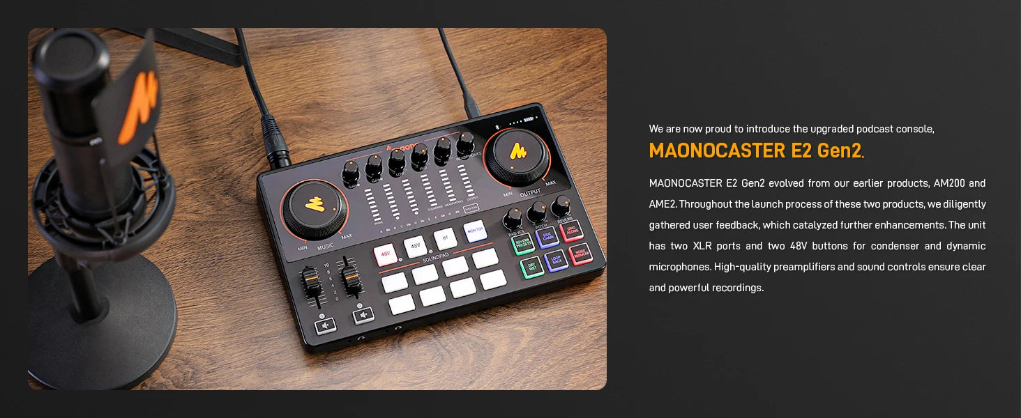 The MaonoCaster Gen 2 Audio Engine is built for creators who demand flexibility and polish in a single portable unit. With dual XLR inputs, pro-grade preamps, onboard effects, and soundpads, itβs designed to streamline podcasting, streaming, and live production for two voices or instruments at once.