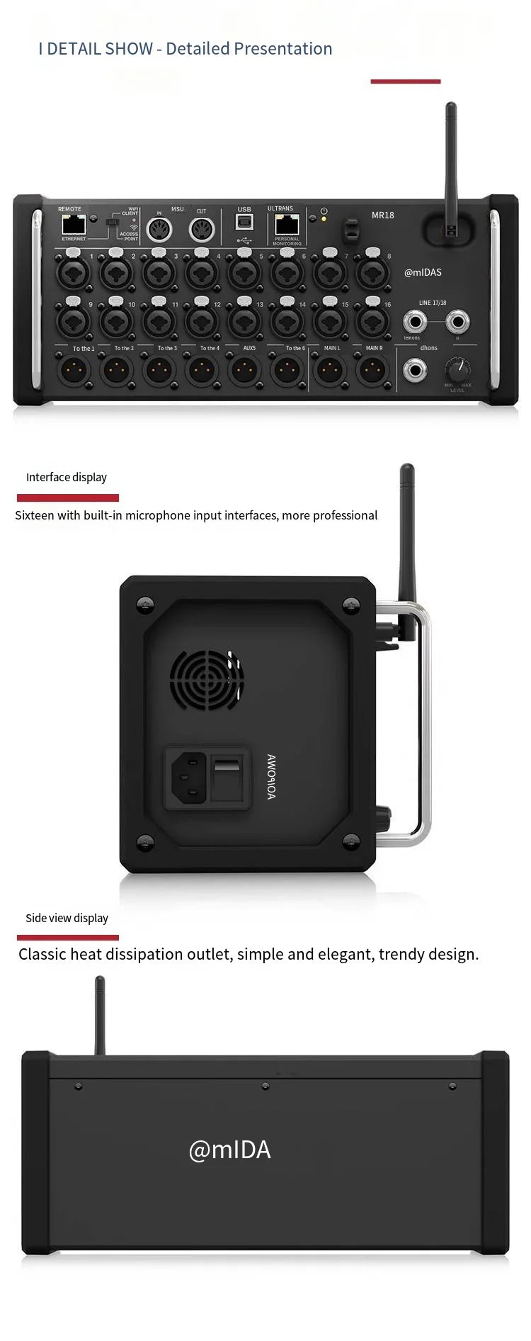 - Inputs: 12 or 18 channels (model dependent) with Midas mic preamps