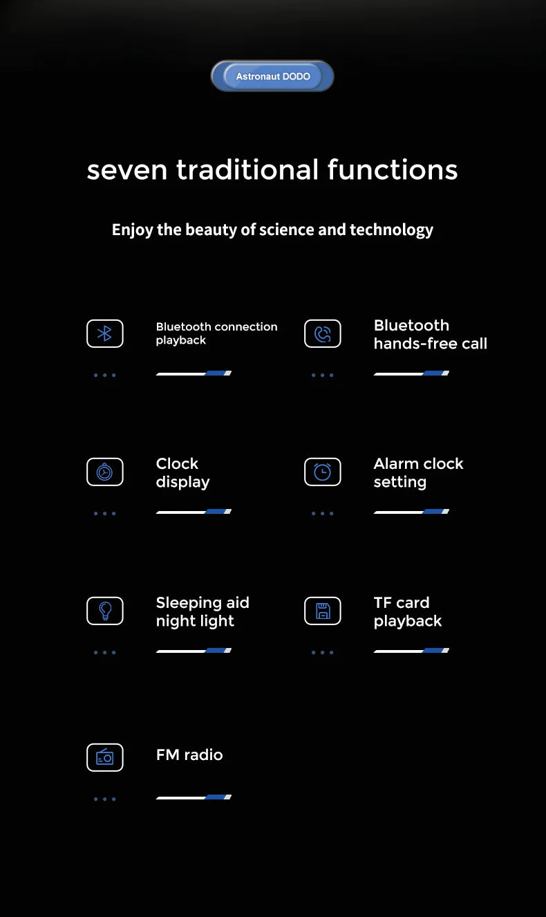 Bring the galaxy to your room. The CosmoBeat™ Astronaut Bluetooth Speaker is more than sound – it’s a nightlight, FM radio, and subwoofer all packed into one futuristic design.