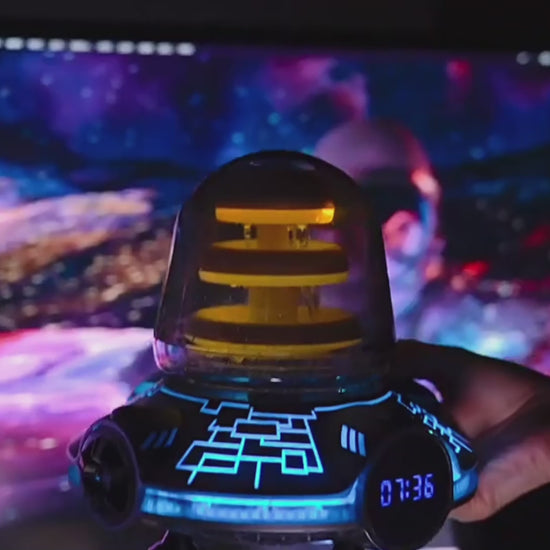 Futuristic form meets fluid light. HydroGlobe Speaker is a sculptural Bluetooth speaker with a domed silhouette and a cascading LED core—creating the illusion of water flowing through a glowing orb. It’s part ambient art piece, part immersive audio experience.