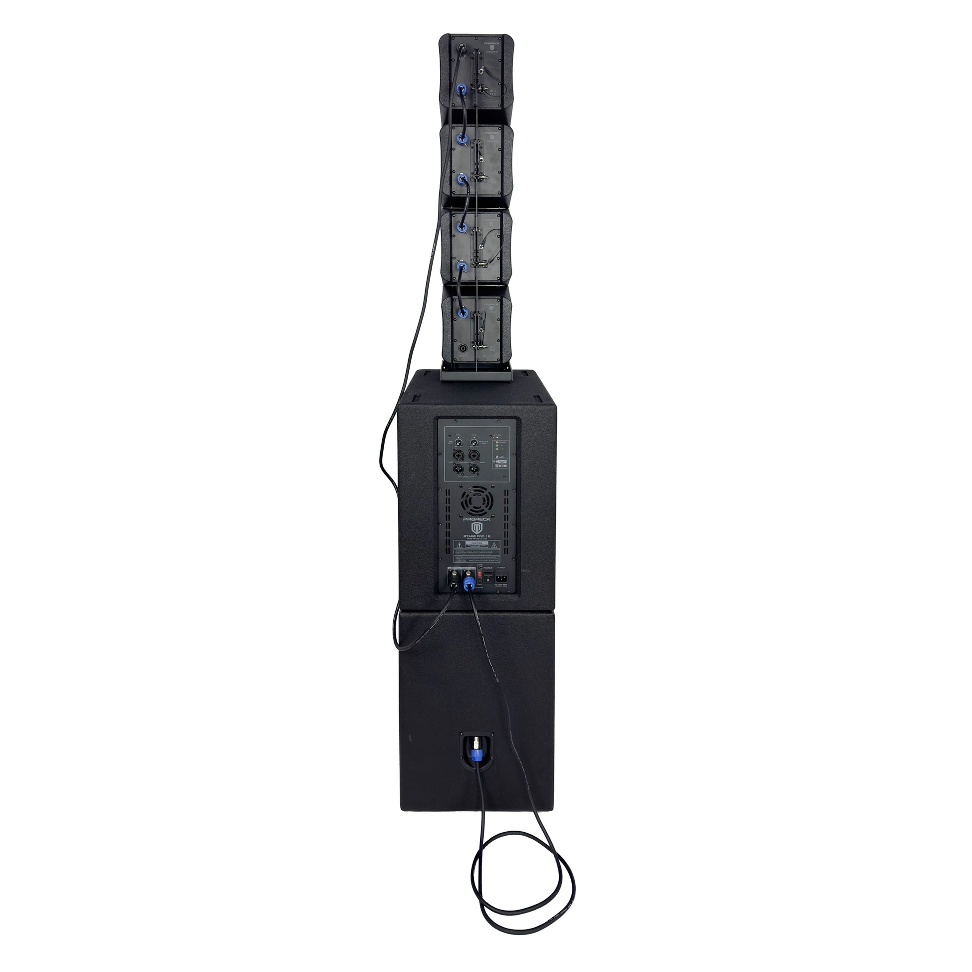 This bundle includes the line-array speakers and dual subwoofers; it is designed to connect with compatible amplification and audio sources as needed.