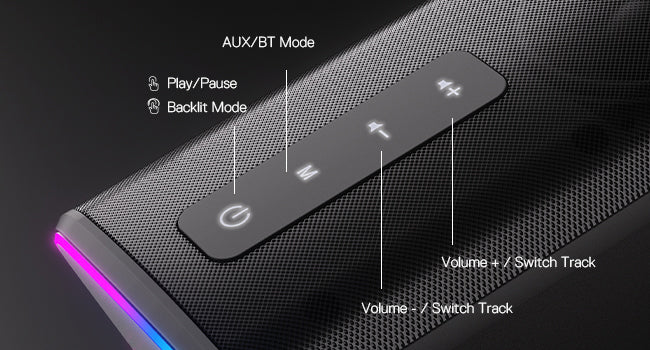 The touch-control interface on the speaker allows you to adjust functions such as volume, lighting, and modes quickly and easily.
