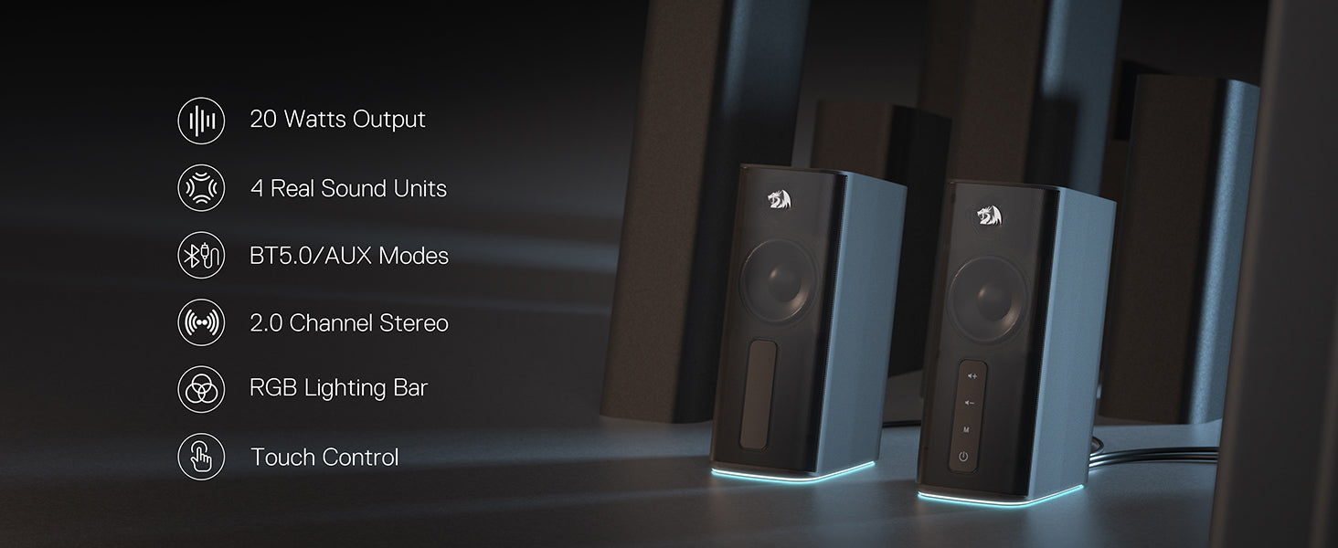 The Redragon GS814 brings fuller, cleaner desktop audio to gaming setups and workstations without taking up valuable space. Its dual-unit design creates a wider, more immersive stereo field, giving you clearer directional cues in games and richer depth when listening to music or watching content. Whether you're upgrading weak monitor speakers or looking for a simple, stylish desktop audio solution, the GS814 instantly improves clarity and presence.