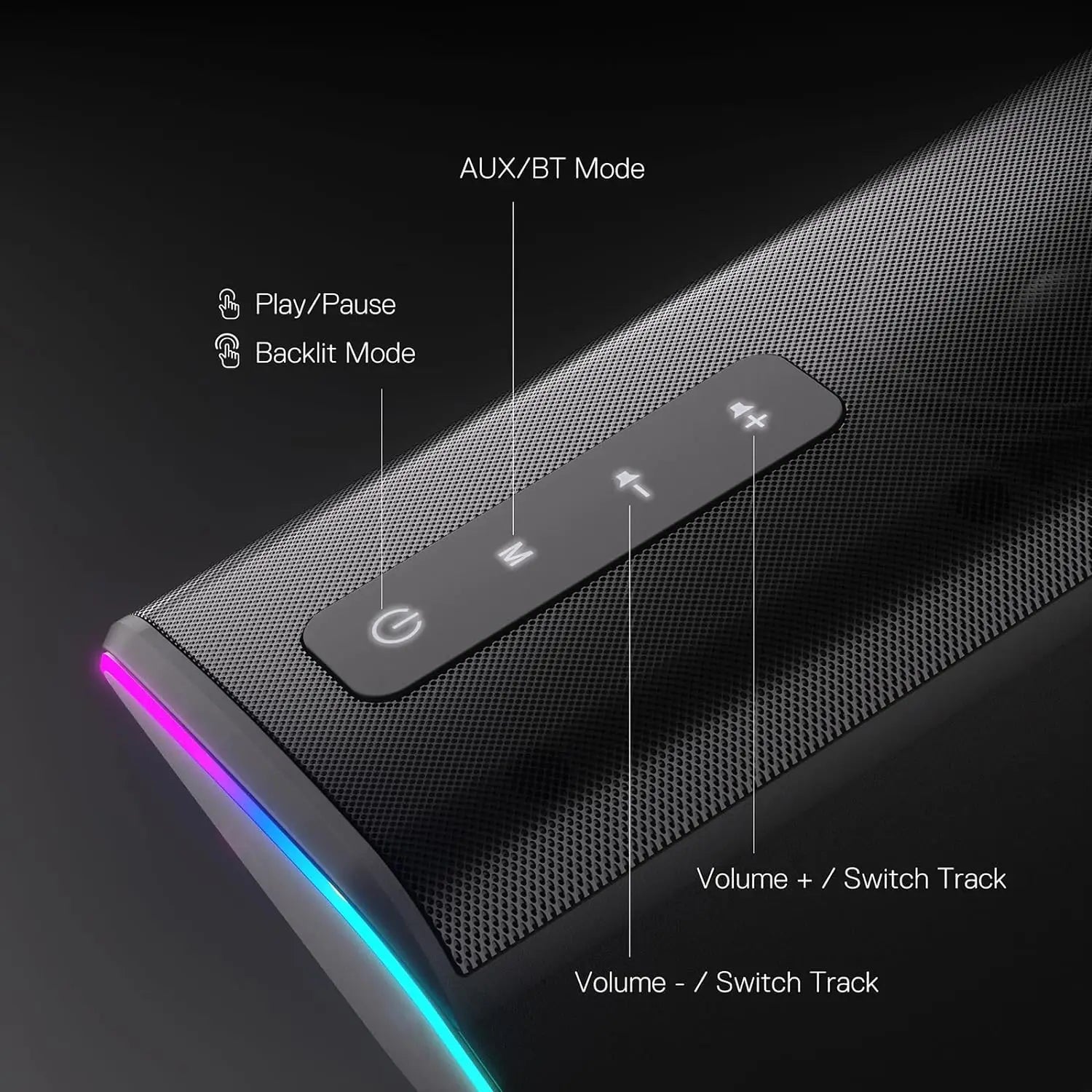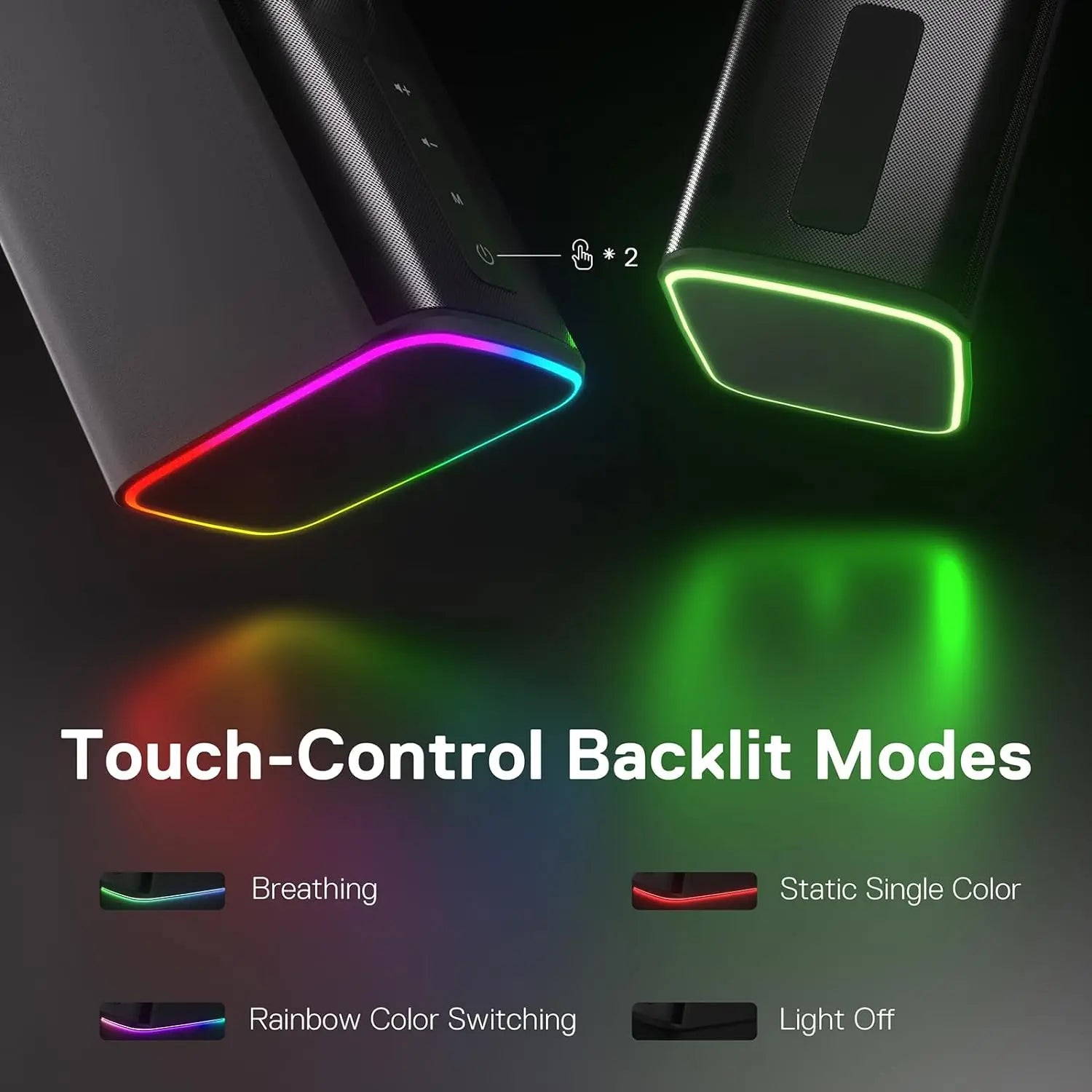 Touch-control access and dynamic RGB lighting add modern refinement, making adjustments fast and intuitive while elevating the look of your desk. With both wireless-style and wired connection options available, you can hook it up quickly to your laptop, PC, or other compatible devices. The GS814 is built for users who want upgraded sound, clean design, and effortless everyday usability.