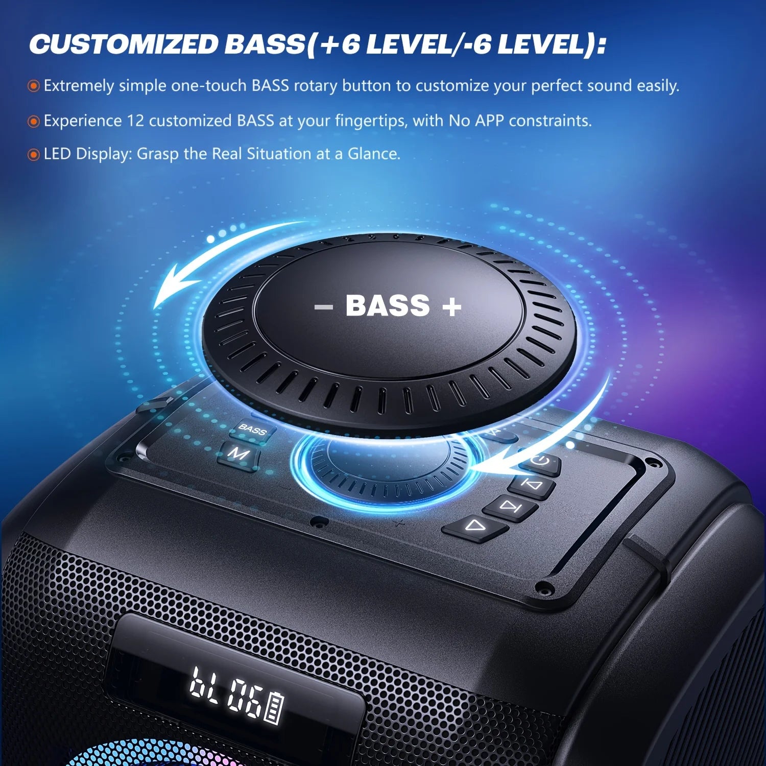 Designed for parties, events, and outdoor use, the T9 Pro combines powerful audio with hands-on control. Microphone and guitar inputs, customizable bass levels, and dynamic lighting make it easy to turn any space into a performance setup without additional gear.