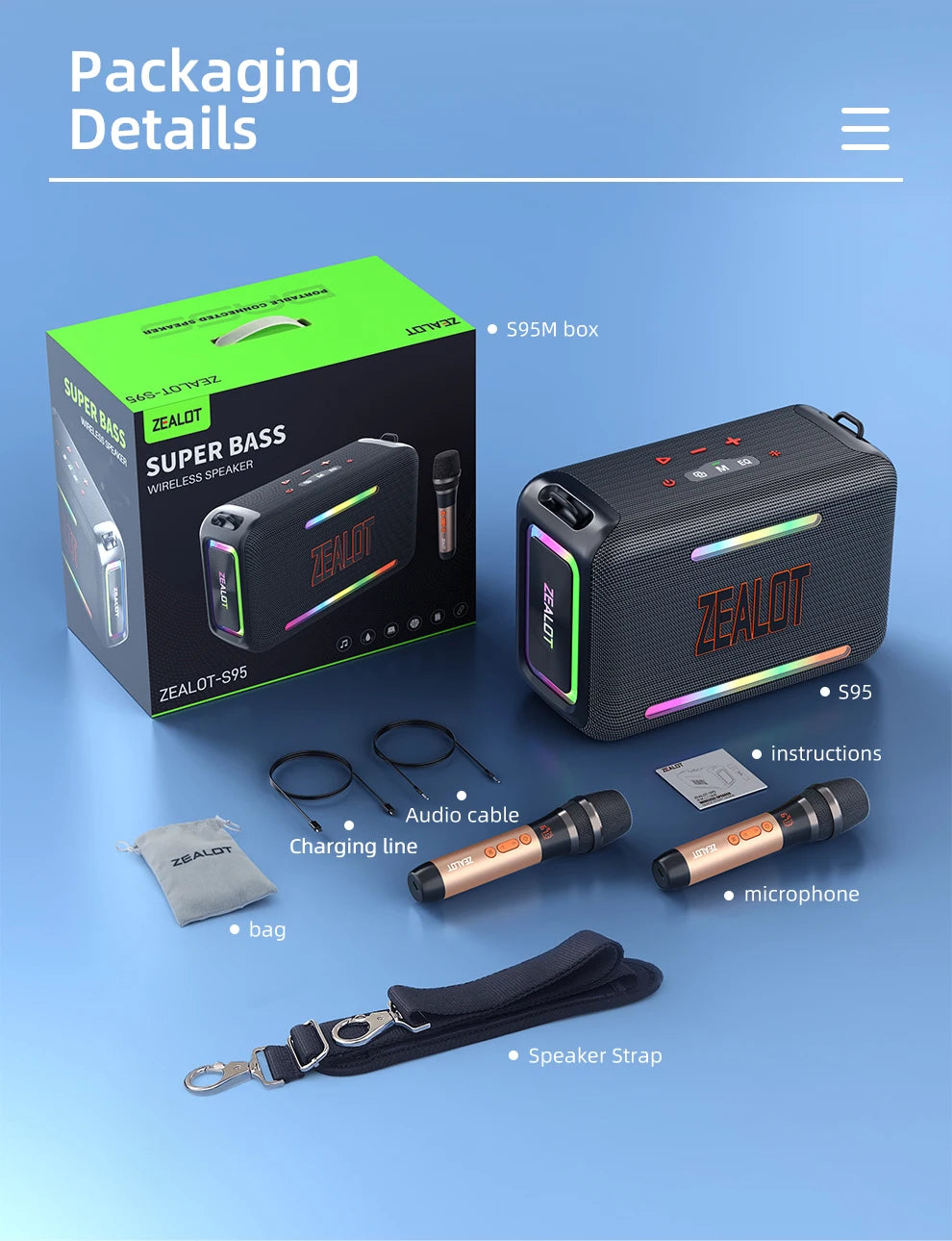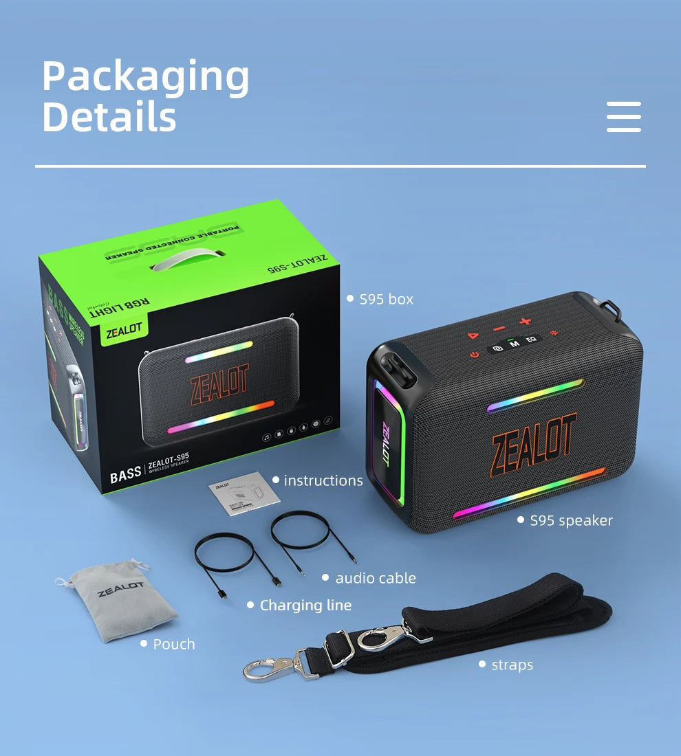 The ZEALOT S95 Power Speaker is built for people who want real volume without hauling a full-size party tower. It delivers room-filling sound with deep, controlled bass in a rugged body that looks as serious as it sounds. Whether it is backyard nights, garage sessions, or outdoor weekends, this speaker hits hard without feeling oversized or cheap.