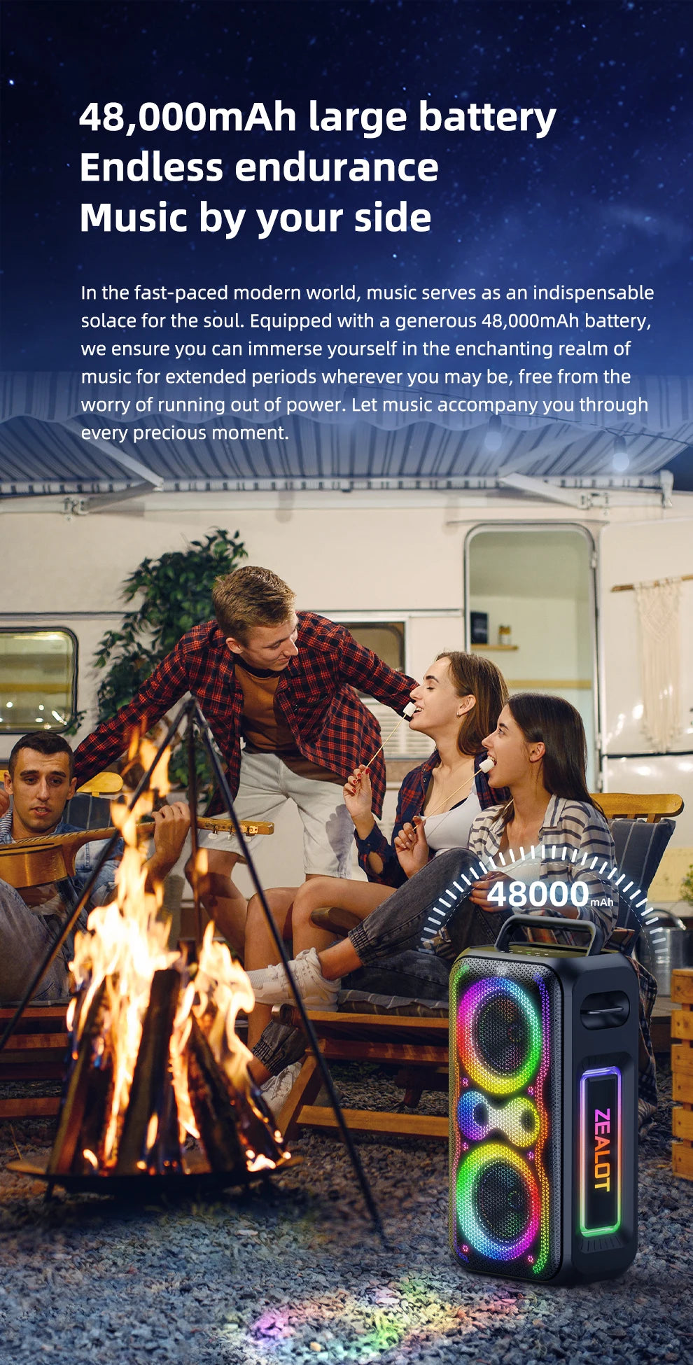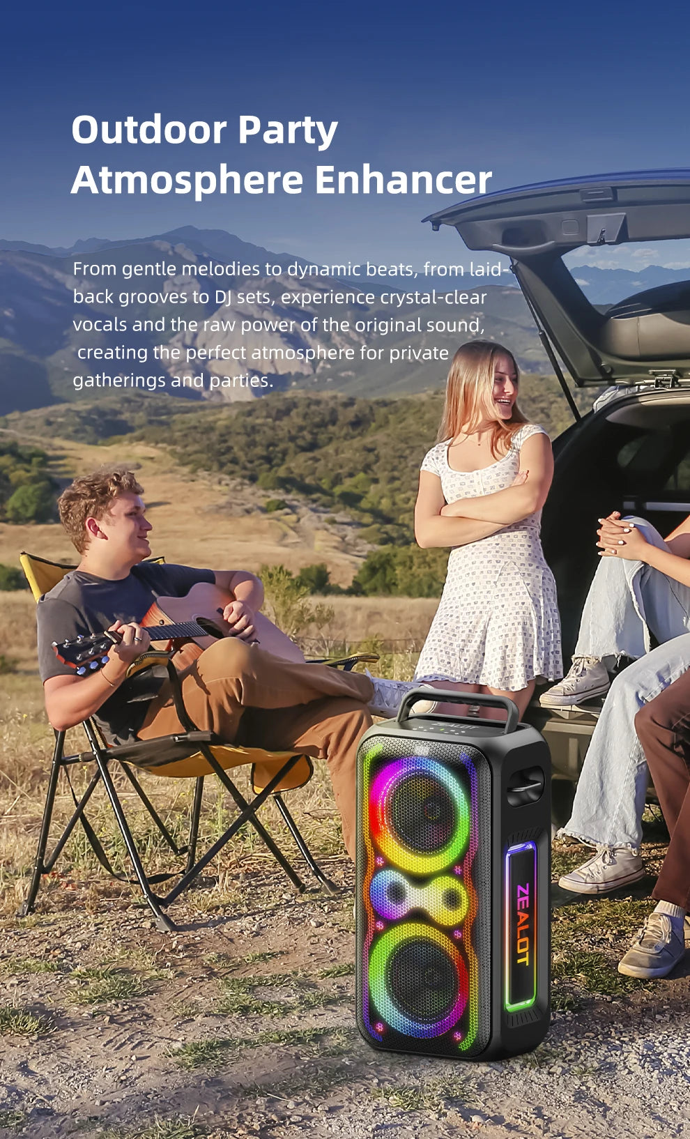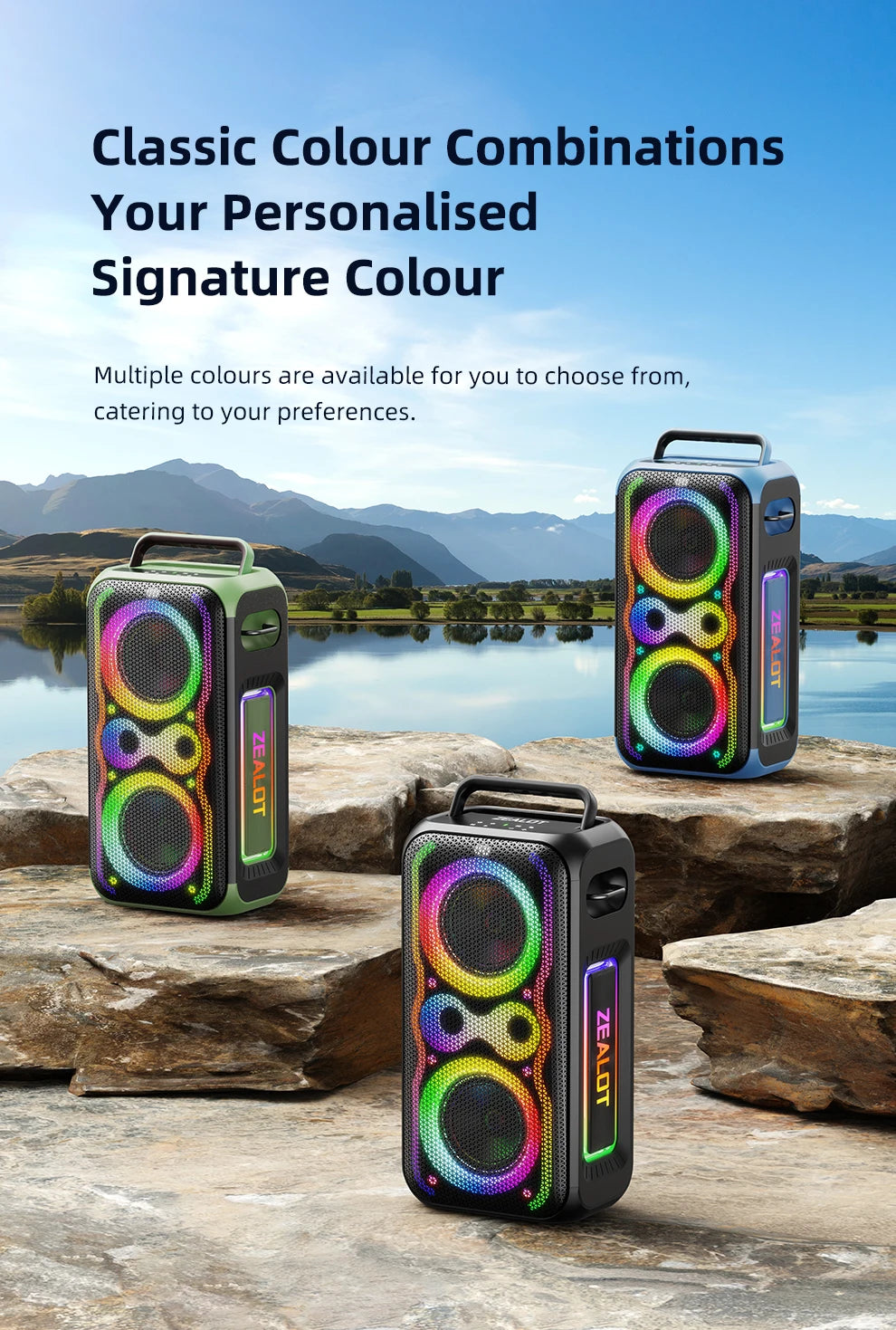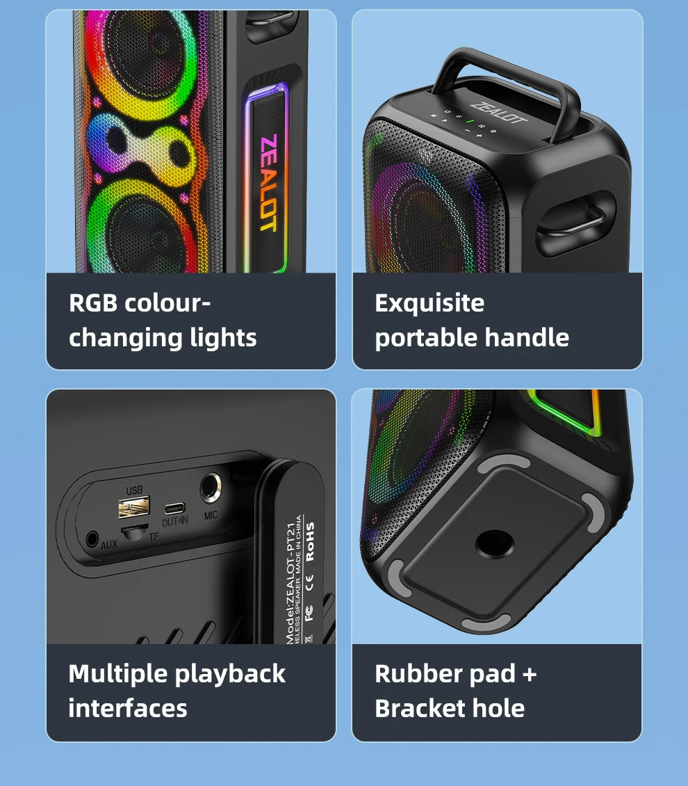 The ZEALOT TIDAL PT21 Party Speaker is built for people who want room filling sound, deep bass, and a full light show from a single portable system. Its high power design and multi mode sound processing make it just as comfortable running a living room movie night as it is driving a house party or filling a larger open space. Set it in the corner, connect over Bluetooth, and you get strong, full range audio with punch that feels far bigger than a typical portable speaker.